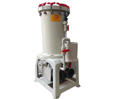 新型除油电镀过滤机的关键技术是利用纳米级特种功能纤维材料,进行阻隔吸附除油,其技术核心是吸附筒结构设计。它能保持溶液中水流大量通过而将油粒大限度地阻隔在吸附层的上部,尽量减少油粒与吸附材料接触的机会,以延长吸附材料的再生周期;同时还要保持油粒与吸附层的接触吸附时间,使通过吸附层的所有油粒从水溶液中分离出来,滞留在功能纤维材料表面。