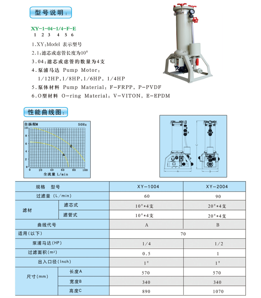 透明亚克力过滤机的适用范围:适用于电镀、PCB、涂装电泳、化工,电子,造纸、蚀刻、环保、废水处理、制药、合成纤维等行业用于输送各种腐蚀的或不允许污染的类似于水的介质。