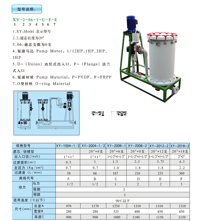6. 特别适用于电镀液、化学液、纯水循环过滤等用途。